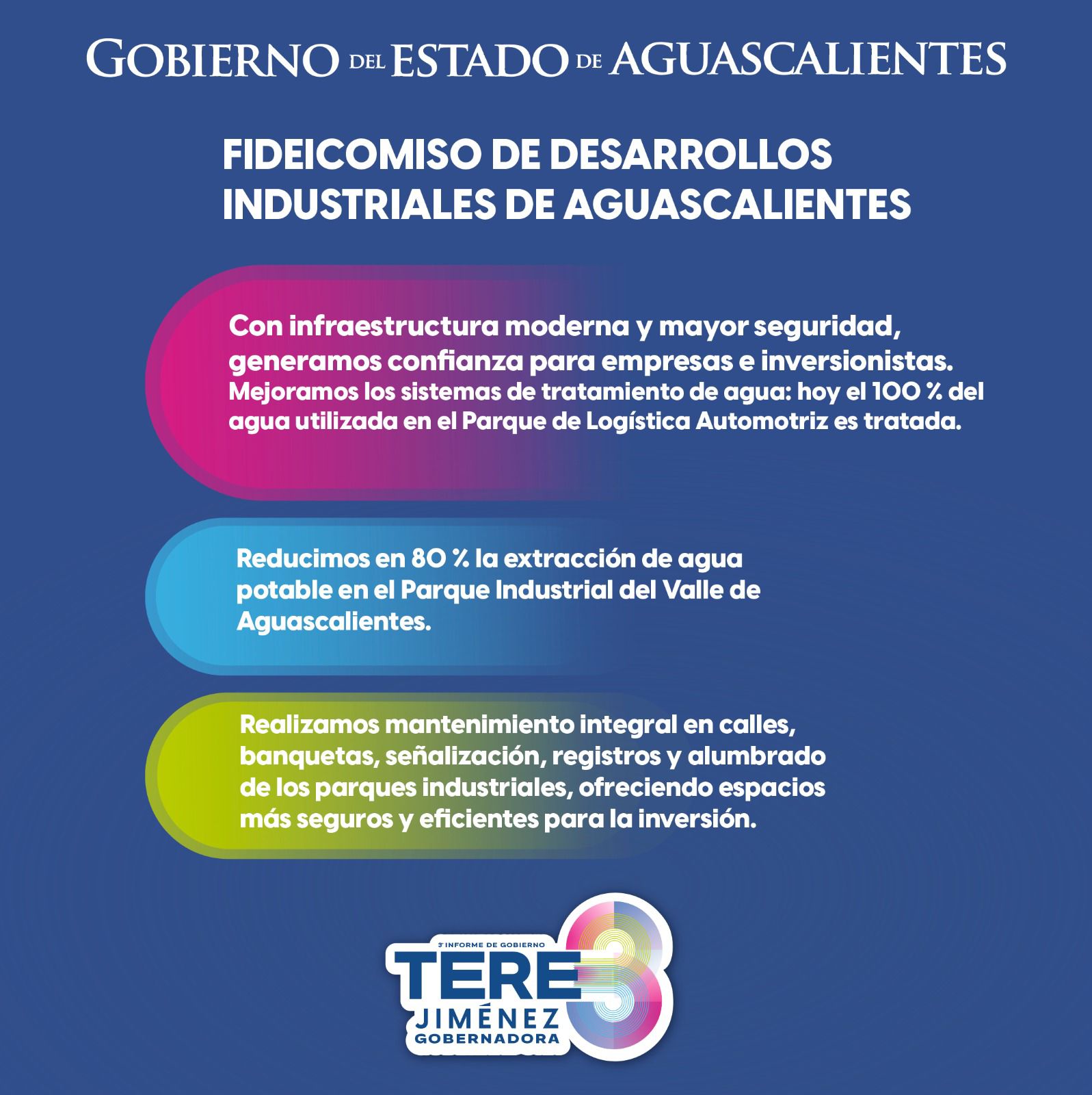 🏭💧 Con una visión que combina innovación, seguridad y sustentabilidad, el Gobierno del Estado de Aguascalientes, a través del Fideicomiso de Desarrollos Industriales, presentó resultados contundentes en el fortalecimiento de la infraestructura de los parques industriales, lo que consolida la confianza de empresas e inversionistas nacionales y extranjeros. 👇🏾👇🏾