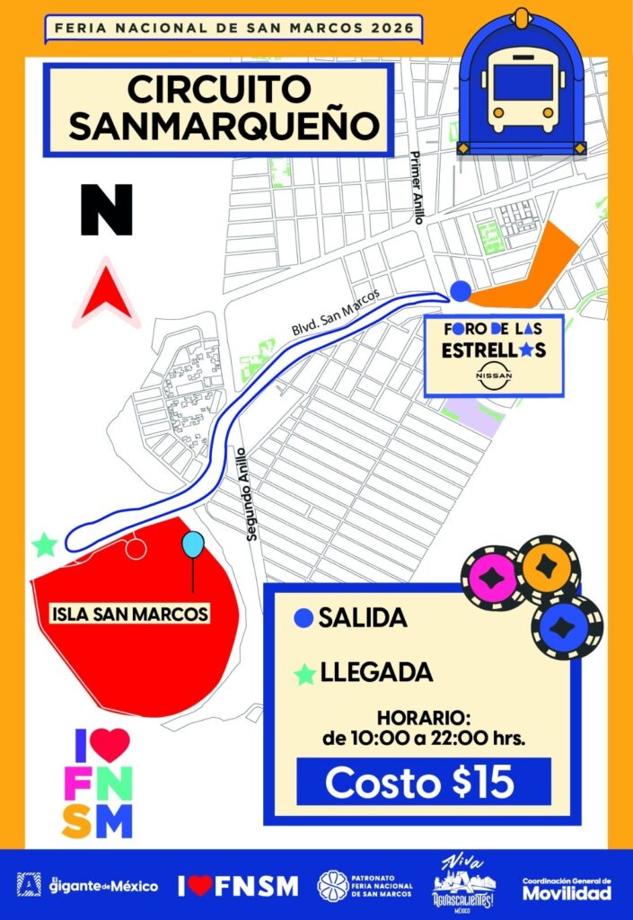 Durante la puesta en marcha, encabezada por Aurora Jiménez Esquivel, presidenta del DIF Estatal, se informó que el Circuito Sanmarqueño operará como una ruta continua entre la Isla San Marcos y las inmediaciones del Foro de las Estrellas Nissan, específicamente en el cruce de Primer Anillo y bulevar San Marcos.