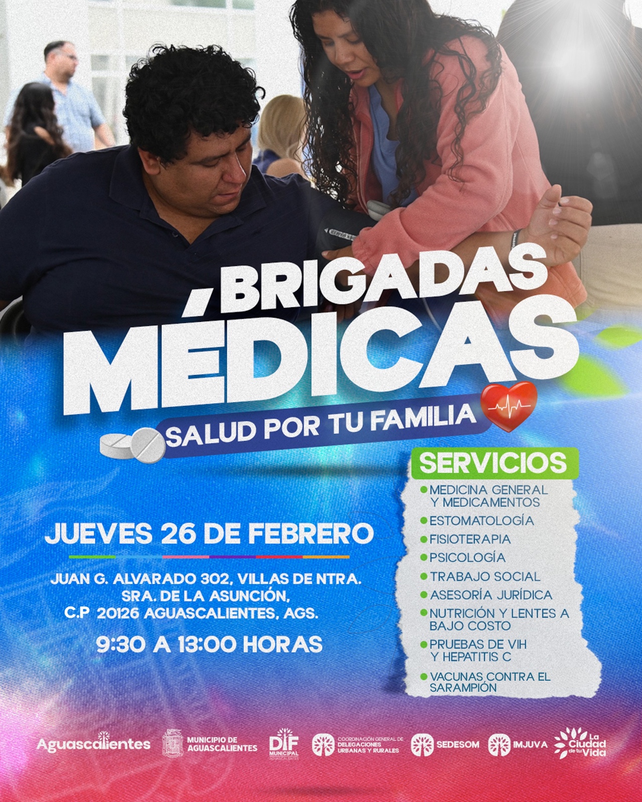 🏥💙 El DIF Municipal de Aguascalientes anunció la realización de nuevas Brigadas Médicas dirigidas a toda la población, con el objetivo de acercar servicios de salud gratuitos y atención integral a las familias del municipio, en dos puntos estratégicos de la ciudad 👇🏽👇🏽