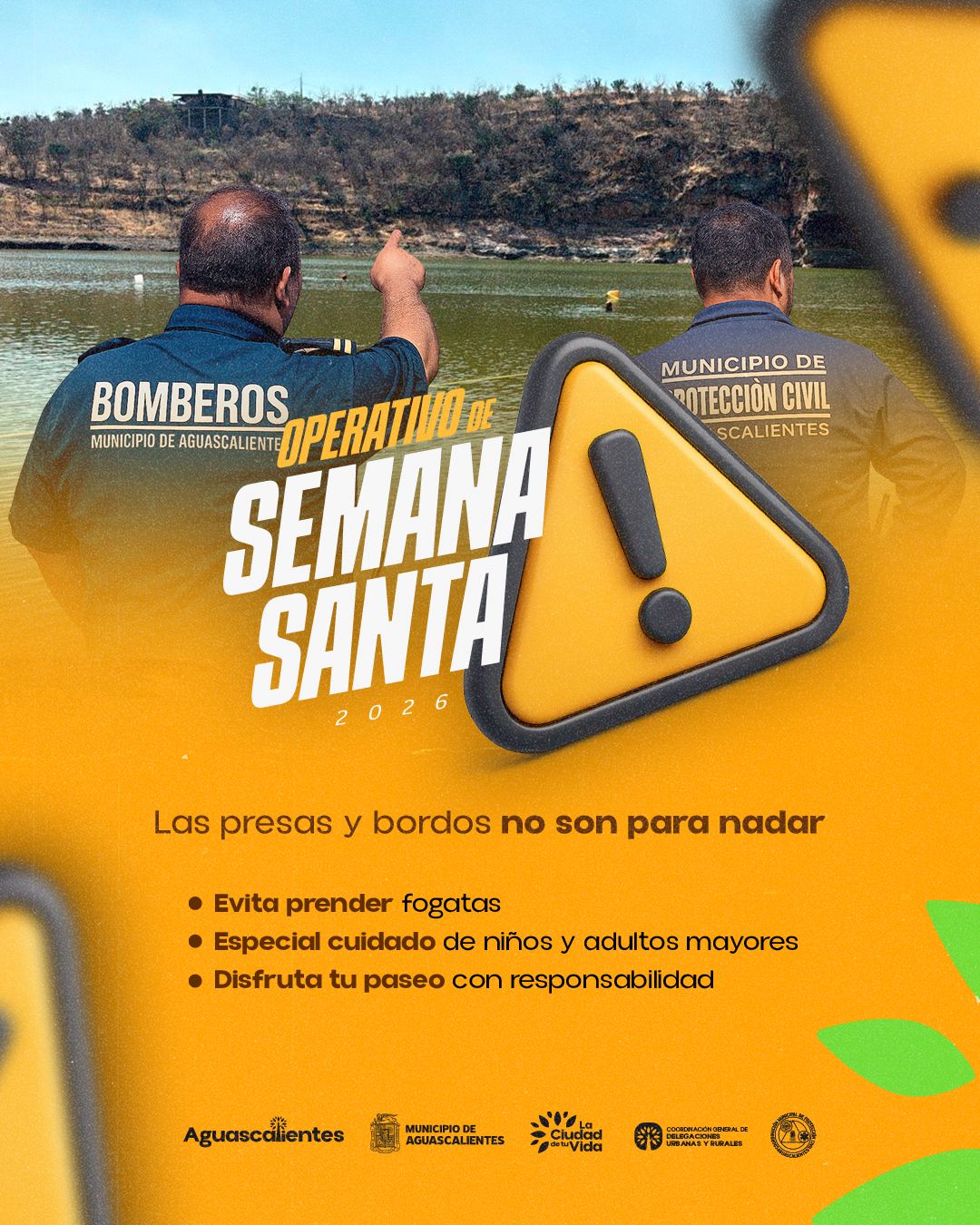 El alcalde reiteró el llamado a la población a disfrutar de estas fechas con responsabilidad, haciendo énfasis en evitar ingresar o realizar actividades acuáticas en presas y bordos sin las medidas necesarias, debido al riesgo que representan estos espacios.
