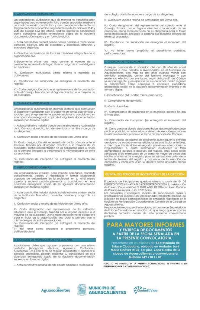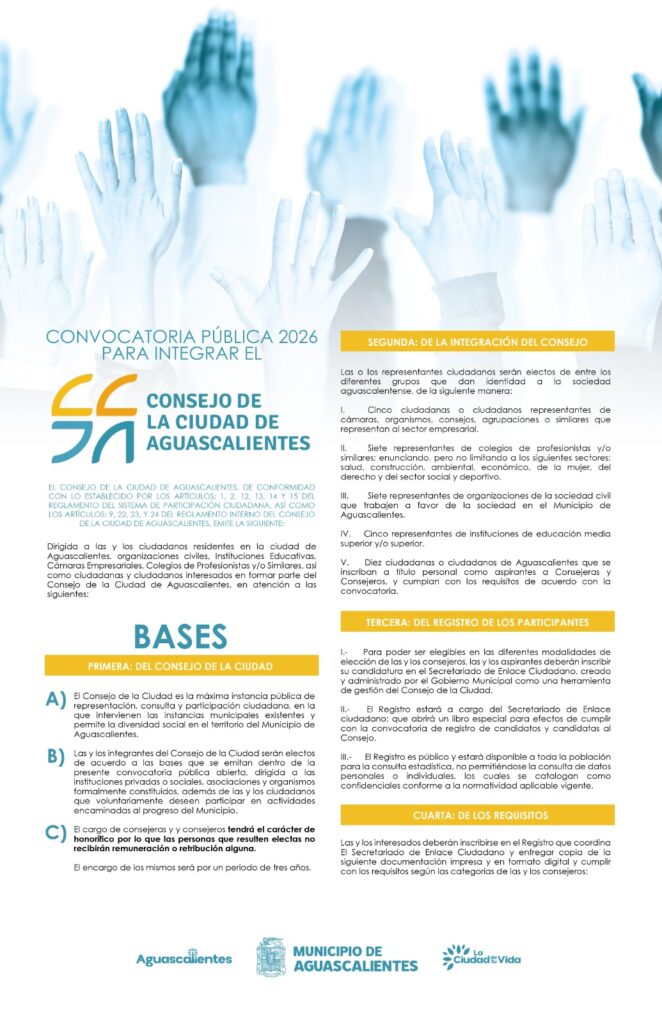 “SE ACERCA EL CIERRE PARA INTEGRARSE AL CONSEJO DE LA CIUDAD DE AGUASCALIENTES 2026”